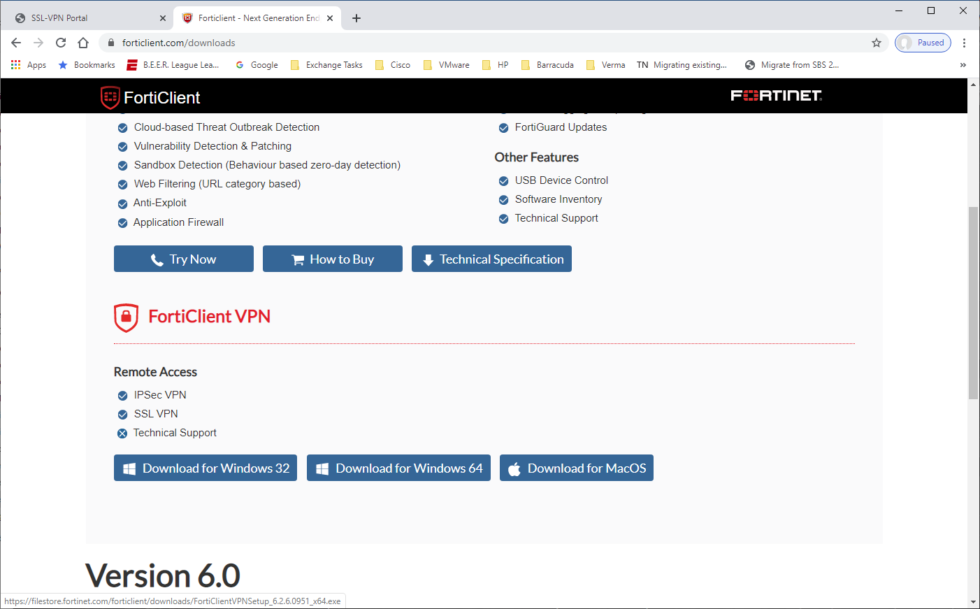 - This will take you to FortiNet’s website, the Download will appear to the right.