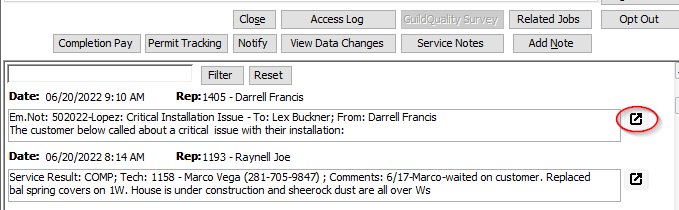 1. Pull up the customer in Leads by their ID, scroll to the service note associated with the notification that you need to re-send, and click the small button to the right of it to see it in expanded form: