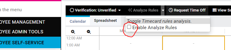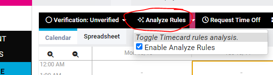 On the employee’s Time Card, click the arrow next to Analyze Rules…