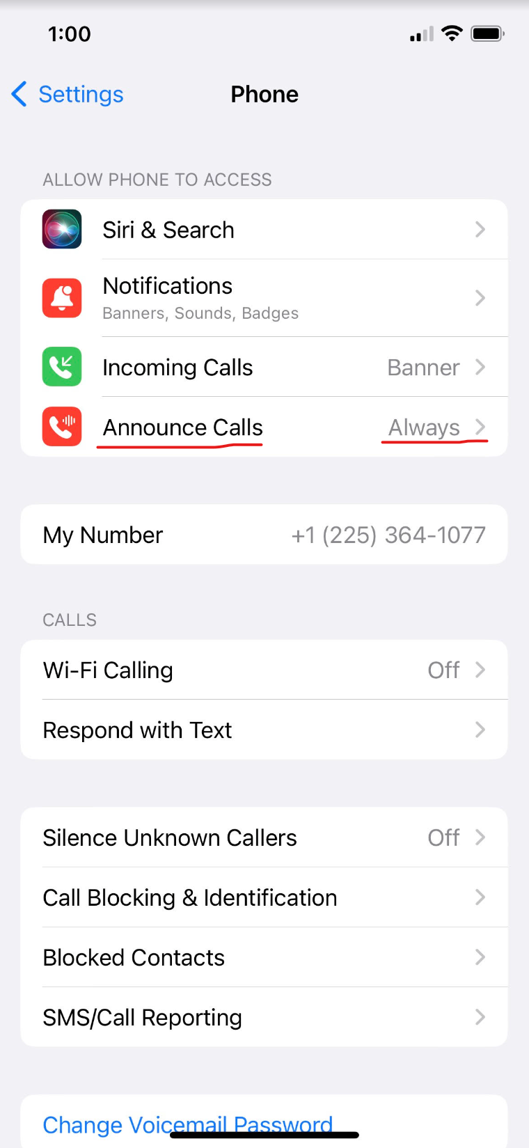 Make sure Announce Calls is set to always and Silence Unknown Callers is set to Off