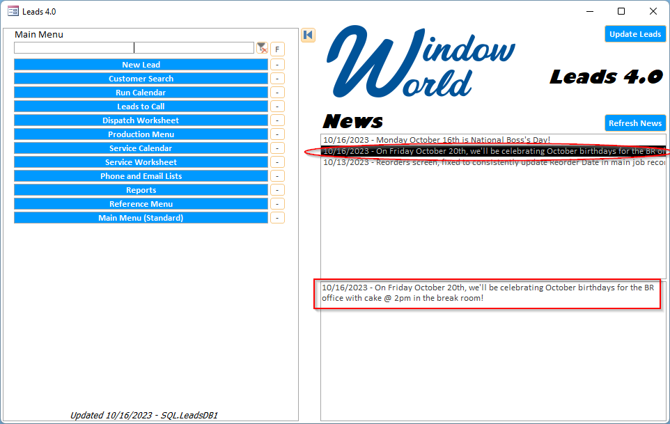 To see more of a listed news item, click on the item and the details will be listed in the box below: