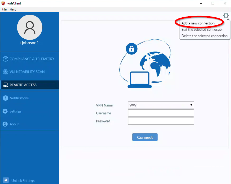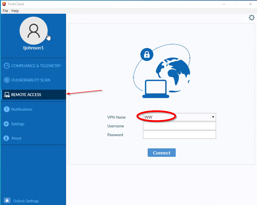 - Click FortiClient VPN on the desktop