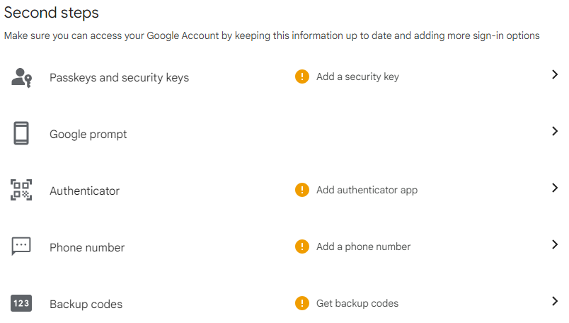 Passkeys and security keys: You can create and add a passkey to your mobile device. This will require a Bluetooth between your computer and mobile device.