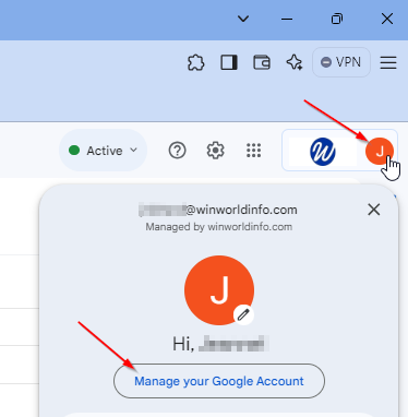 Click top right corner letter in circle, then Manage your Google account: