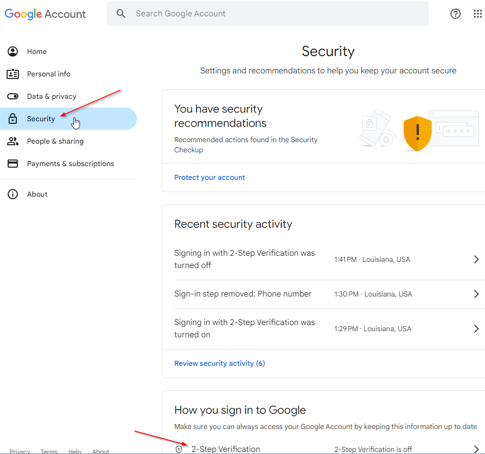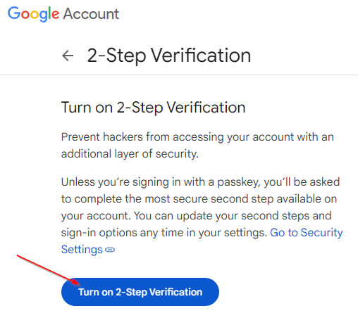 Click Turn on 2-Step Verification:
