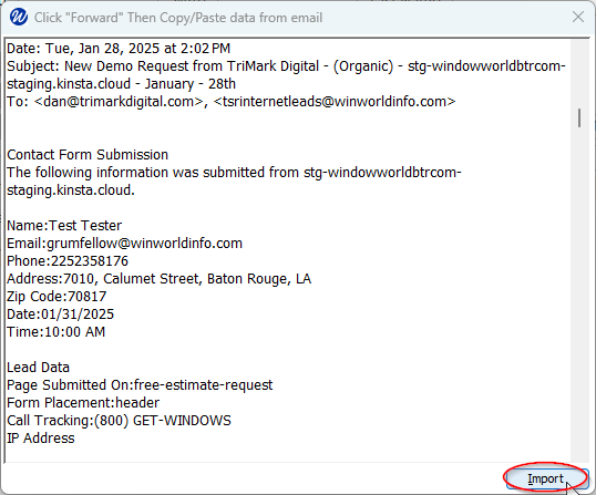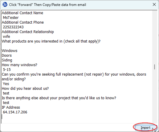 In Leads app, Ctrl+V to paste into the import screen, then click the Import button: