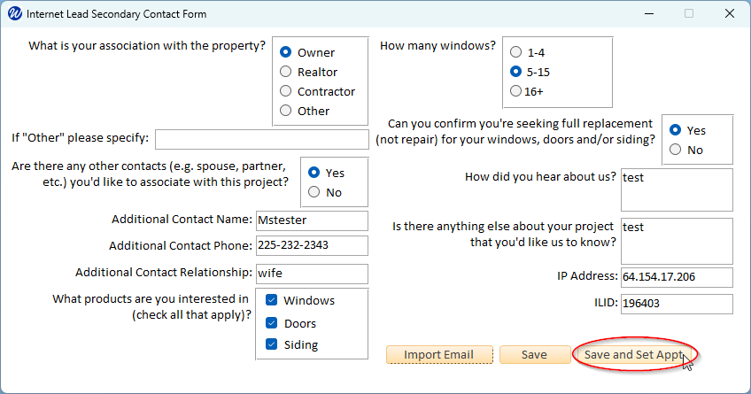 Click the "Save and Set Appt" button: