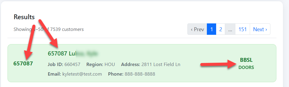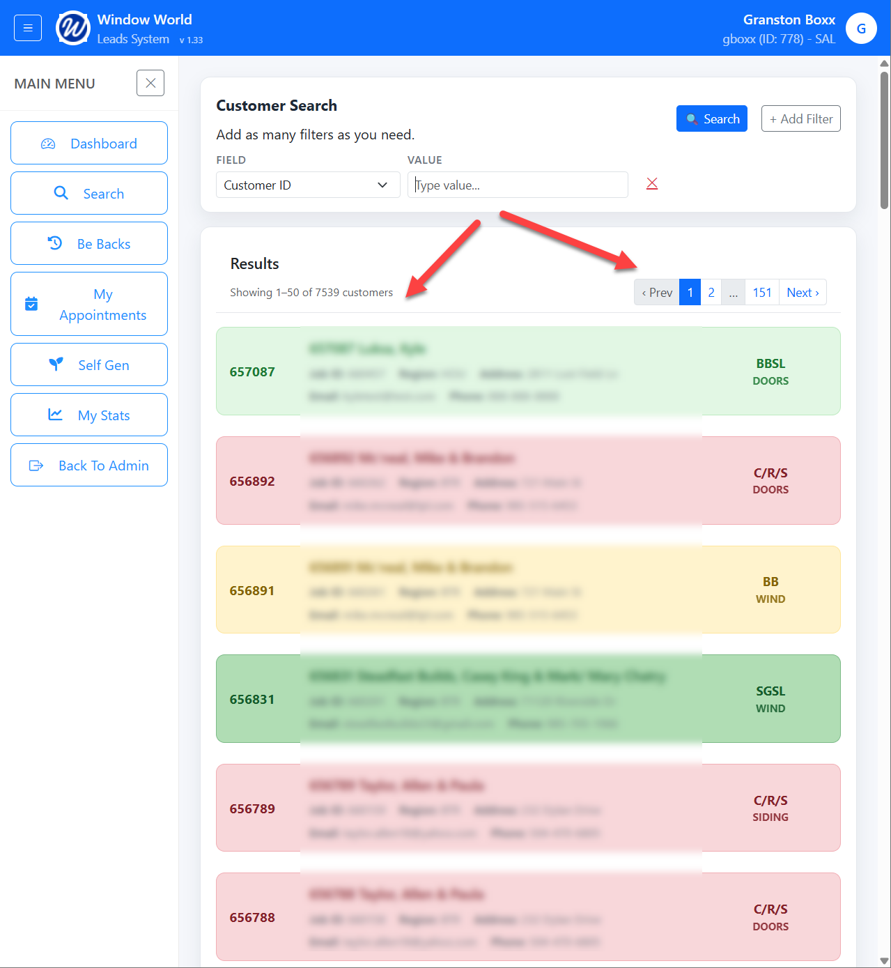 The Search results are paginated and display up to 50 leads per page. You can navigate between pages using the pagination controls in the top-right corner.