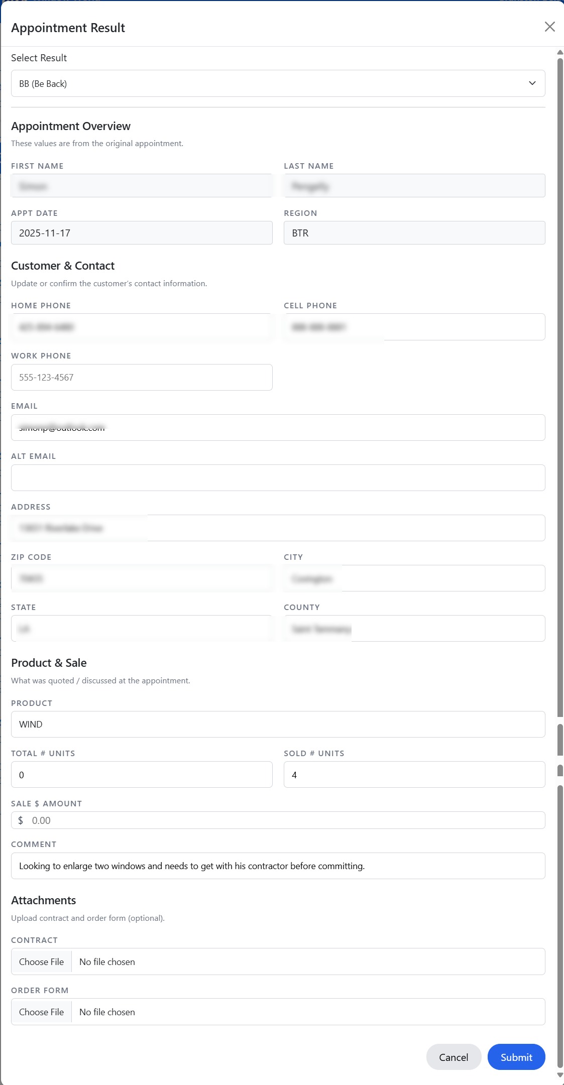 Similar to the Be-Backs, the appointments will be colored coded based on the Result assigned.